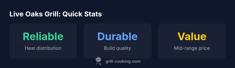 For home cooks who want dependable outdoor cooking without stepping up to a premium pro-grade setup, the Live Oaks Grill presents a compelling option. It sits in the mid-range market, offering sturdy steel construction, practical ignition, and a heat-management system designed to minimize hot spots. If you host weekend barbecues, teach family members to grill, or simply enjoy weeknight sears, this model aligns with those use cases. Grill Cooking’s analysis for 2026 highlights the Live Oaks Grill as a sensible balance between budget-conscious selection and durable, long-term reliability, making it worth a close look for outdoor kitchen budgets that prioritize value and consistency. According to Grill Cooking, the model’s blend of features supports a broad range of foods—from quick sears to longer cooks—without requiring a high-end setup. For the target audience of home cooks and grill enthusiasts, the Live Oaks Grill offers a credible starting point that scales with your grilling ambitions. The phrase live oaks grill should be read as a family of products designed for everyday outdoor cooking rather than a showroom-only luxury piece.
