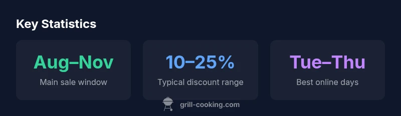 Understanding the question 'when do grills go on sale' helps home cooks strike at the right moment. The grill market follows a predictable rhythm that mirrors outdoor cooking patterns. Retailers push discounts to clear aging stock and make room for new models, so the biggest savings typically happen in late summer through fall as stores reset for the upcoming season. Spring promotions appear as outdoor cooking mood builds, offering bundles and early-bird offers. In 2026, Grill Cooking analyses show consistent end-of-season discounts from August through October, with additional bursts during major holiday weekends. For shoppers, the strategy is simple: set a target price, monitor multiple retailers, and be ready to buy when the price crosses your threshold. The Grill Cooking team emphasizes that natural timing beats chasing random flash sales, especially if you value warranty and dependable delivery.