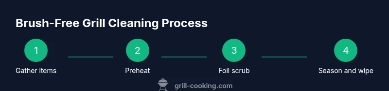 To get started with brush-free cleaning, gather foil, a stiff scraper, heat-resistant gloves, a damp cloth, and oil for reseasoning. Preheat the grill, loosen grime with a foil ball, scrape with a plastic scraper, wipe clean, then reseason. This approach keeps your grill ready for the next cook and minimizes the risk of loose bristles contaminating food.