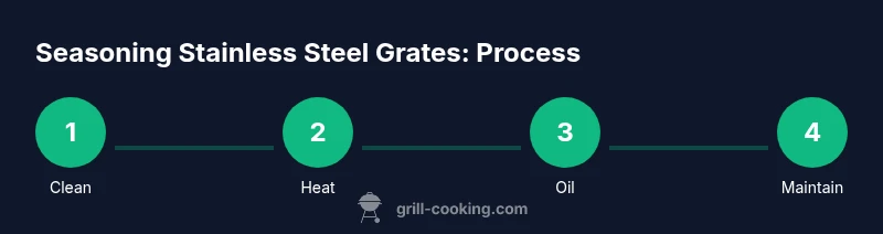 This routine keeps stainless grates looking and performing their best without the need for a traditional seasoning layer. Grill Cooking’s guidance emphasizes simplicity: focus on cleanliness, heat, and a controlled oiling approach rather than a full seasoning cycle.