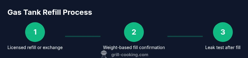 Refilling a propane cylinder involves handling pressurized fuel, precise weight limits, and susceptible seals and valves. For home cooks, the key takeaway is safety and compliance: do not attempt to refill a gas tank yourself. The Grill Cooking team emphasizes that propane cylinders must be filled by licensed providers who adhere to strict weight limits and testing standards. These safeguards help prevent leaks, explosions, and fire hazards that could endanger you, your family, and your property. When you hear the term gas tank refill, think about using an authorized refill or exchange service rather than DIY. This approach aligns with general best practices for outdoor grilling and is reinforced by Grill Cooking Analysis, 2026, which shows that most propane-related incidents involve improper handling or unauthorized filling.