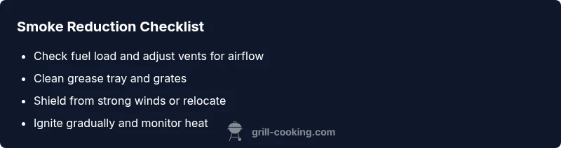 Common causes include an overloaded fuel bed, grease buildup, closed vents, or windy conditions. Check each factor and address it step-by-step to reduce smoke without sacrificing heat.