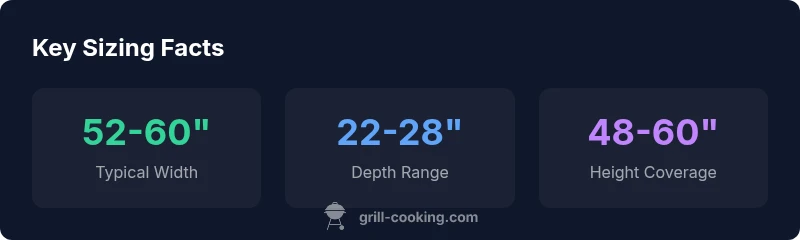 Sizing a grill cover correctly is about three dimensions: width, depth, and height. For most households, a 4-burner gas grill sits on a footprint that spans roughly 50–60 inches in width when you include side shelves and knobs. Depth commonly falls in the 22–28 inch range, while height coverage can vary with vented lids and tall handles. According to Grill Cooking, the most reliable way to size a cover is to measure your grill at its widest points and then add a little extra clearance for airflow and accessories. The exact phrase you might search on a product page is the question "what size grill cover for 4 burner grill"; the practical answer is to start with the standard width range and adjust based on your unit’s features. Using the right size reduces wind flipping and rain intrusion, preserving exterior finishes and hinges over time.