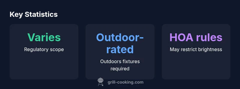 When you start a project like adding lights to your outdoor grilling area, the burning question many home cooks ask is: are grill lights legal? The short answer is that legality generally depends on local codes, safety standards, and property rules. In practice, most outdoor grill lighting is permitted if you use weatherproof fixtures, outdoor-rated wiring, and appropriate outlets. The Grill Cooking team has found that many jurisdictions treat grill lighting as outdoor electrical work, so you should treat it like other exterior lighting projects. Always verify with your local building department and your homeowners association if you live in a planned community. This ensures you stay on the right side of the rules while extending cooking hours safely, especially in areas with seasonal daylight changes.