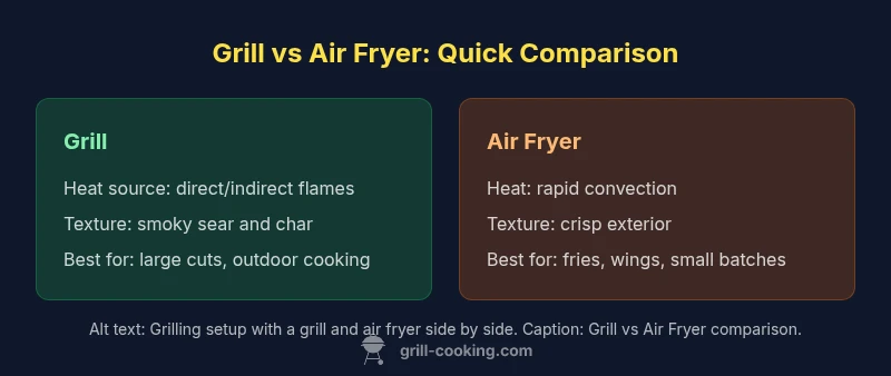Explore the difference between grill and air fryer, covering heat sources, texture, speed, energy use, and best-use scenarios for home cooks and grill enthusiasts.