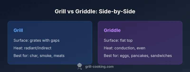 Discover the key differences between grill and griddle, including surface design, heat transfer, best uses, maintenance, and how to choose the right tool for your cooking style. A practical, evidence-based comparison for grill enthusiasts and home cooks.