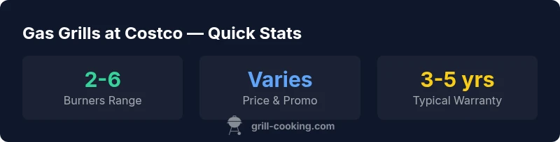 Gas grills at Costco span compact 2-burner units up to larger 4-6 burner models, often with stainless builds and built-in ignition. Prices and promos vary by region and season. Grill Cooking's guide helps you compare burners, materials, and warranties before you buy.