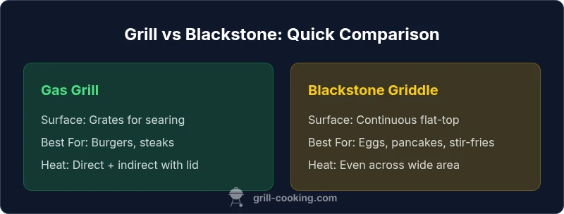TL;DR: For most home cooks, a traditional gas grill offers broader flavor options, quicker preheat, and more versatility, while a Blackstone flat-top excels at even cooking, breakfast-style meals, and large surface tasks. If you prioritize smoky flavor and sear with a lid, a gas grill is typically the baseline choice; choose Blackstone when flat-top surface matters most.