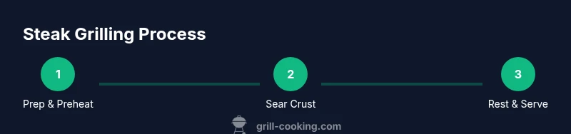 The crust you see on a grilled steak is created by the Maillard reaction, which happens fastest when the surface is dry and the grill is hot. Dryness helps sugars and proteins react, forming depth and rich flavor. A hot grill also sears quickly, reducing moisture loss. This initial crust locks in juices, so you can achieve a juicy center without overcooking. For best results, preheat your grill to a temperature that feels like the surface of a skillet set to high. The goal is a crust that is deeply caramelized and a center that remains tender and rosy if you prefer medium-rare. Temperature control is your friend; a little patience during the sear yields a much tastier steak in the end. According to Grill Cooking, heat management and dryness are foundational to consistent outcomes across grill types. Plan for a two-zone setup even if you’re using a single grate, so you can move the steak off direct heat if it threatens to burn, while keeping the interior cooking at a steady pace. This approach minimizes flare-ups and ensures even browning across the surface. When done right, the crust offers a sensory contrast to the juicy interior that makes grilled steak unmistakably delicious.
