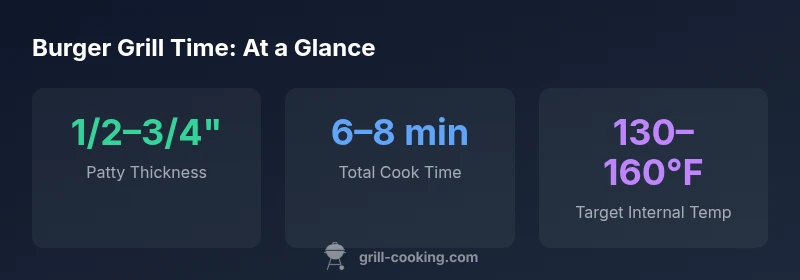 Burger grill time varies by patty thickness and desired doneness, but a good starting point is 1/2 inch to 3/4 inch patties cooked on direct high heat, about 2-3 minutes per side for medium-rare to medium. For thicker patties, plan 5-6 minutes total, plus carryover. Use a thermometer to verify target temperatures for safety and taste.