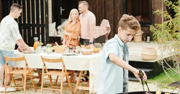Clean grill grates after cooking to prevent rust; store skewers dry. Wear heat resistant gloves. Check propane levels or charcoal readiness before cooking. Fire safety: keep water or a fire extinguisher nearby. After cooking, clean utensils and bowls and store marinade containers in the fridge.