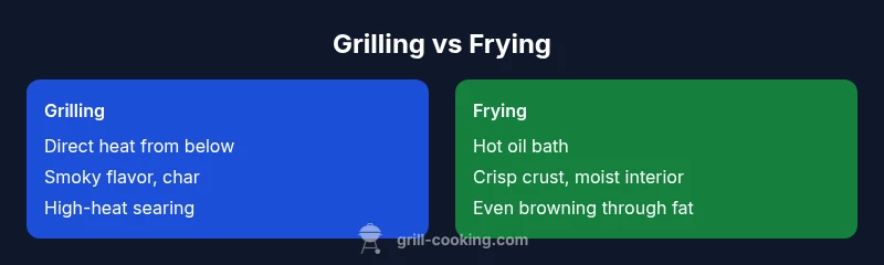The question many home cooks ask is how is grilling different from frying, and the answer boils down to heat transfer, fat management, and flavor development. Grilling uses direct radiant heat from below (charcoal or gas) to sear the surface and create smoky flavors through char and convection. Frying submerges or partially submerges food in hot oil, transferring heat quickly and producing a moist interior with a crisp exterior. This fundamental difference in heat delivery shapes the texture, aroma, and even the browning patterns you’ll observe on the plate. According to Grill Cooking, the method you choose sets up a distinct culinary path, affecting everything from timing to cleanup and even smoke management in your cooking space.