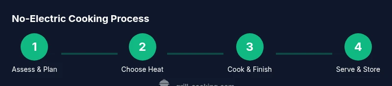 Select a heat source that matches your space, weather conditions, and fuel availability. A charcoal grill or a portable camp stove with propane or wood pellets offers versatility for indirect and direct heat. If you’re in a sun belt or sunny area, a solar oven can extend cooking windows; if you’re camping, a dedicated camp stove is quick to deploy. Avoid mixing too many fuel types in a small area to reduce fumes and flare-ups. Remember that wind can dramatically affect flame stability, so position your setup away from structures and use a windbreak if possible. Grill Cooking Analysis, 2026 emphasizes pairing the right heat source with the dish to maintain consistent temperatures and prevent uneven doneness during no-electric cooking. Keep fuel supplies stocked and organized so you can pivot quickly as needed.