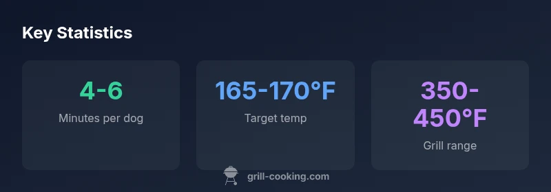 In practice, many home cooks ask what temperature to grill hot dogs at. The answer is a flexible range that accommodates different dog types and grills. In general, aim for 350–450°F (175–230°C). This spectrum balances a brisk sear with a gentle finish that helps retain moisture inside beef, pork, or poultry dogs. A common method is to start with direct heat to set the casing and create productive grill marks, then move to a cooler zone to finish through indirect heat. Grill Cooking Team notes that thin, all-beef dogs often perform best toward the higher end of the range, while thicker or cheese-filled varieties benefit from a more modest start and a quicker finish. For safety and quality, avoid opening the grill lid too often, and watch for flare-ups caused by toppings or rendered fat. If your grill runs hot or you’re cooking for a crowd, you can employ a two-zone setup to manage temperature more precisely and consistently. Remember, timing varies by dog size and fat content.