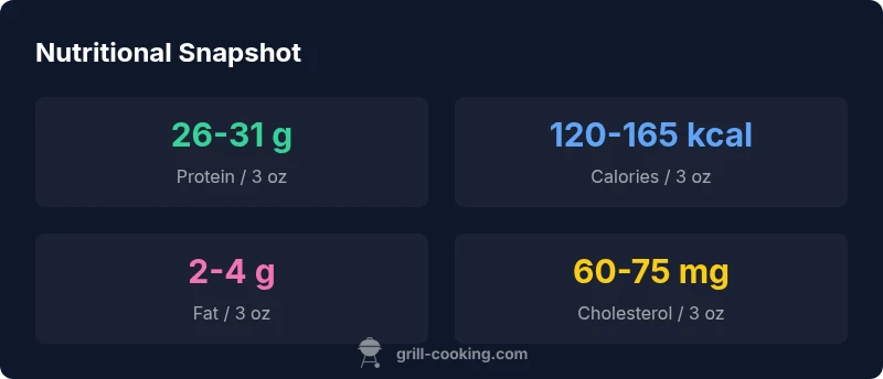According to Grill Cooking, the nutrition profile of grill chicken breast nutrition makes it a dependable anchor for lean protein in weekly menus. A standard 3-ounce portion of cooked, skinless chicken breast typically delivers a robust amount of protein with relatively low fat, making it a go-to choice for athletes, busy families, and anyone aiming to balance energy intake with muscle maintenance. In this section, we translate the numbers into practical takeaways: most people can count on roughly 26-31 grams of protein per serving, with calories ranging from about 120 to 165 depending on how it is prepared (seasoning, marinade, and whether the skin is left on). Magnesium, potassium, and B vitamins such as niacin and vitamin B6 contribute modestly, while selenium provides antioxidant support. The Grill Cooking team highlights that the exact figures depend on portion size and cooking method, but the core message remains: grilled chicken breast is a lean, protein-dense option that fits a variety of diet patterns. This baseline helps you plan meals around protein targets while keeping fats and calories in check.