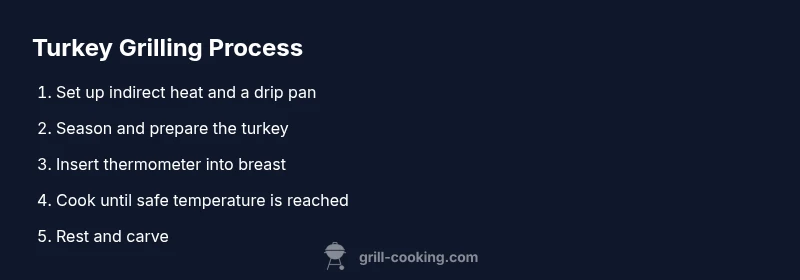 Learn to grill a turkey safely and juicy with indirect heat, thermometer-guided timing, brining options, and practical tips from Grill Cooking.