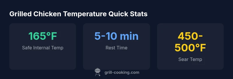 For more on safe cooking temperatures and best practices, consult official sources and trusted institutions. USDA guidance emphasizes 165°F for poultry and highlights the importance of avoiding cross-contamination and maintaining clean equipment. The FDA also provides general safety practices for cooking meat and poultry, while major health organizations reinforce the importance of temperature control in preventing foodborne illness. In practice, combine thermometer checks with mindful resting and zone-management on the grill to deliver consistent, juicy results.