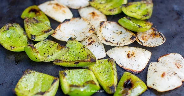 Two-zone grilling is ideal: indirect heat to soften the onion and direct heat for a quick caramelized crust. Preheat the grill to about 350–375°F on the indirect side. Place the onion on a foil-lined tray or directly on the grate, covered loosely with foil to trap steam. Rotate occasionally for even cooking and to avoid hot spots. If using charcoal, arrange coals to create a ring of high heat around a cooler center. Plan for 15–20 minutes of indirect cooking, then 3–6 minutes over direct heat to develop color. Total time varies with onion size and grill temperature; aim for tenderness comparable to roasted vegetables, not a crunchy bite. If browning too quickly, move the onion away from direct heat or shield with foil to finish through carryover heat.